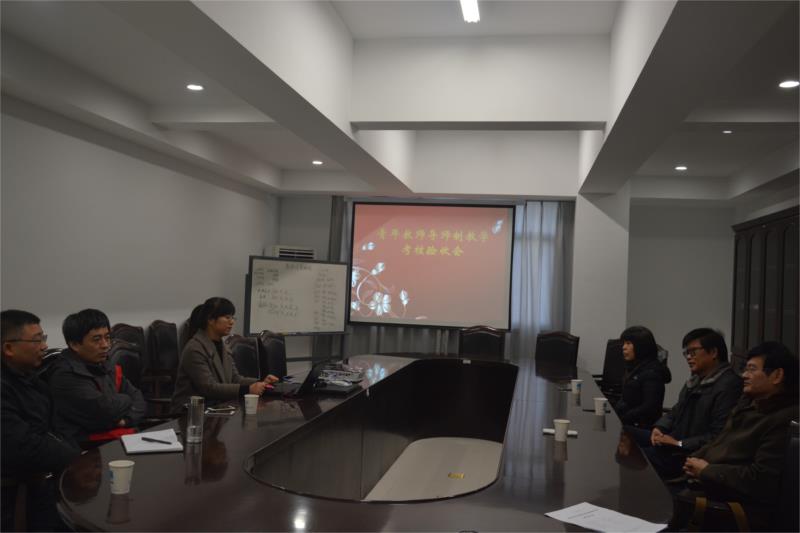 朱玉平副主任首先就2016年导师制开展情况作了简要介绍。随后,青年教师骆明霞老师进行了导师制验收汇报,骆老师利用PPT从师德师风、教学基本功等方面作了深入浅出的汇报。最后,教学发展中心主任沈召前研究员、人事处副处长陈春玲教授、教学质量监控与评估中心主任杨立军研究员对骆老师的汇报分别进行了精彩点评。