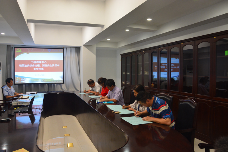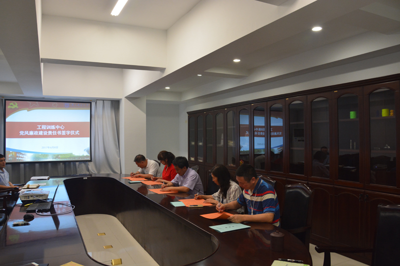 会上,张学军书记首先结合前期上级党委纪委到中心签署2017年度党风廉政建设责任书并开展专题调研情况,对照责任书清单,完善责任制网络,严格遵规守记、一岗双责、廉洁从政从教要求,对2017年党风廉政建设工作进行了部署。接着对落实好中心各项校园治安综合治理、消防安全工作,切实创造安全稳定的育人环境进行工作部署。最后,中心主任、书记张学军与中心办公室主任、计算中心主任、机械制造实训部主任、电工电子实训部主任、实训保障部主任签订了2017年度《工程训练中心三级单位党风廉政建设责任书》和《工程训练中心三级单位校园治安综合治理工作、消防安全责任书》。