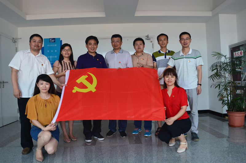 最后全体党员胸佩党徽,簇拥在鲜红的党旗周围合影留念,庆祝党的96周年生日。