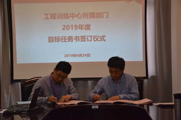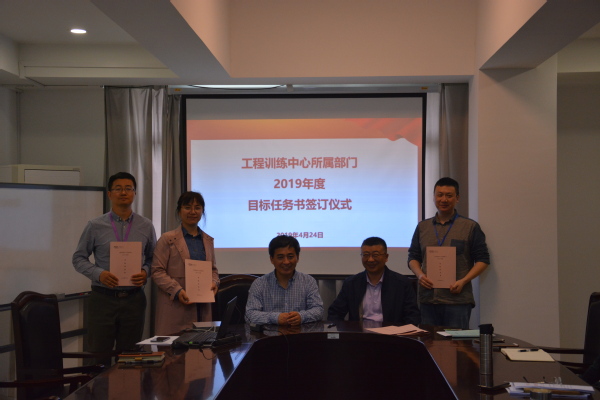 424日,中心在工程训练楼会议室举行了所属部门2019年度目标任务书签订仪式。中心全体领导和老师参加了仪式。