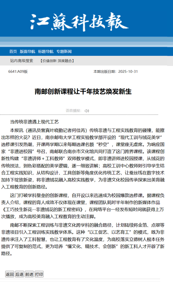 【江苏科技报】南邮创新课程让千年技艺焕发新生